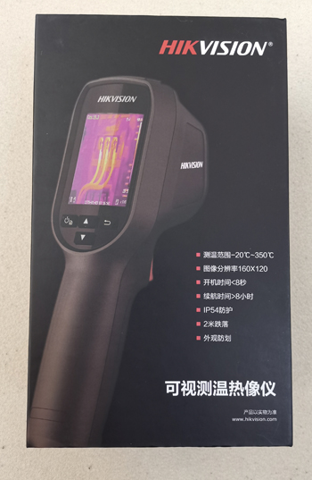 ??低旽10熱像儀外觀盒裝正面有??低昄OGO字樣及精簡的特點說明,后面有??低暤?00電話及網(wǎng)址