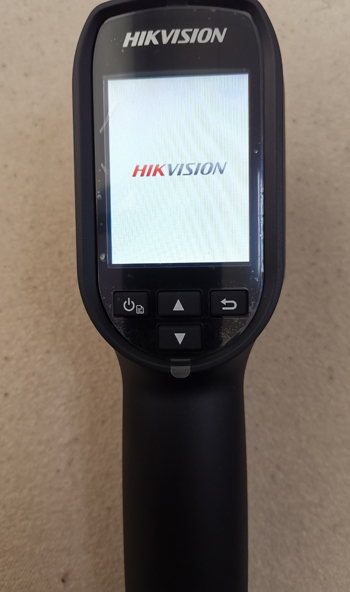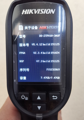 ??低旽10熱像儀開機界面首先是海康威視LOGO開機動畫效電動機,進入菜單設(shè)置最后項有該機的版本型號等,及存儲容量信息