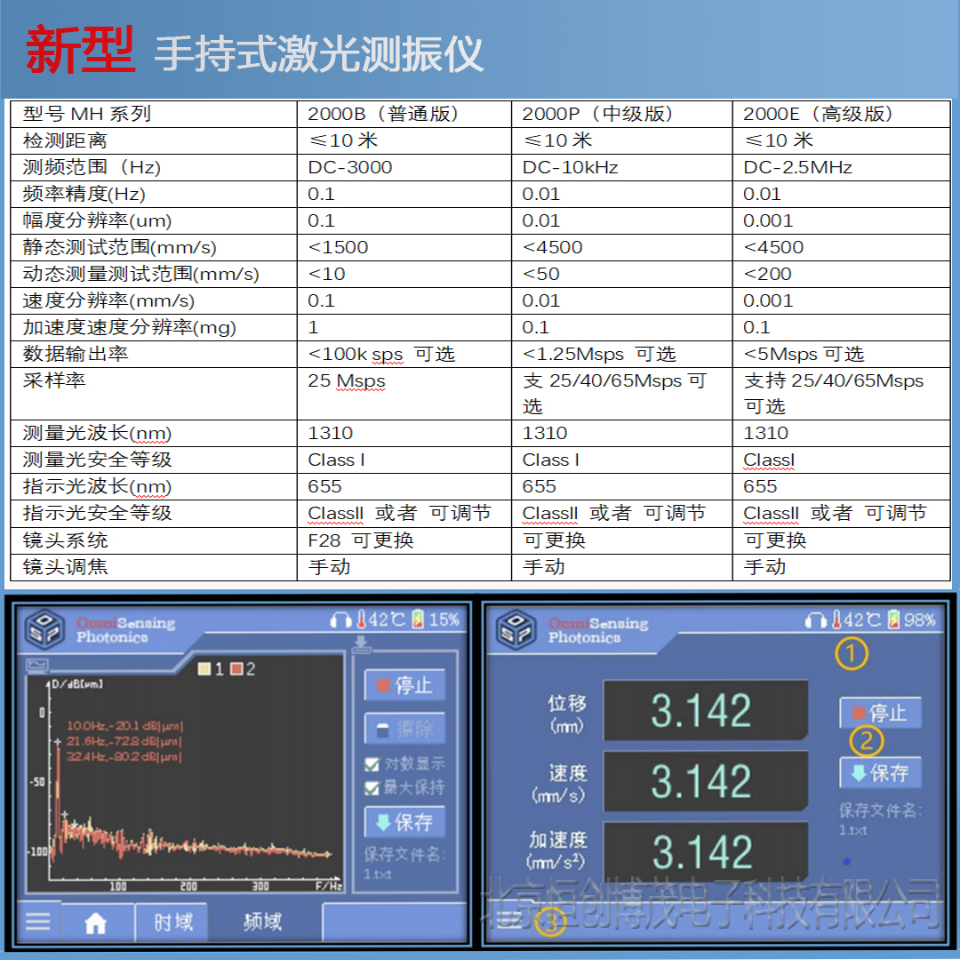 MH手持激光測振儀利用集成光學芯片為核心,將光學相干光路、調(diào)制光路等集成在單個光電芯片上,克服傳統(tǒng)分立式元器件體積過大等缺點,極大提升了多普勒測振儀的使用便利性。MH手持式激光測振儀采樣率為65Msps,頻率高達2.5MHZ,最遠支持10米的測試。